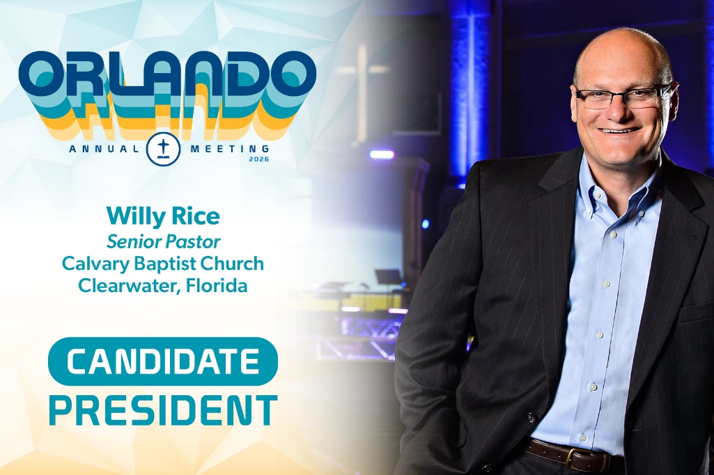 CLEARWATER, Fla. (BP) — Florida pastor Willy Rice announced his intentions to be nominated as a candidate for Southern Baptist Convention (SBC) president at the 2026 SBC annual meeting in Orlando. In a video released Friday (Oct... read more
