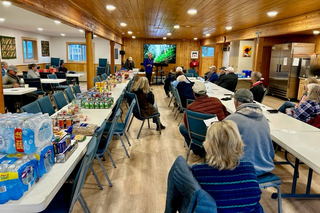 Colorado Baptist Disaster Relief volunteers attend orientation at Vallecito Church as new supplies arrive for the food bank to help those in need after record rainfall flooded the San Juan River and Vallecito Creek.