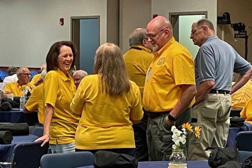 Jamie Reynolds, right, talks to other volunteers with Kentucky Baptist Disaster Relief during a celebration of the organization.