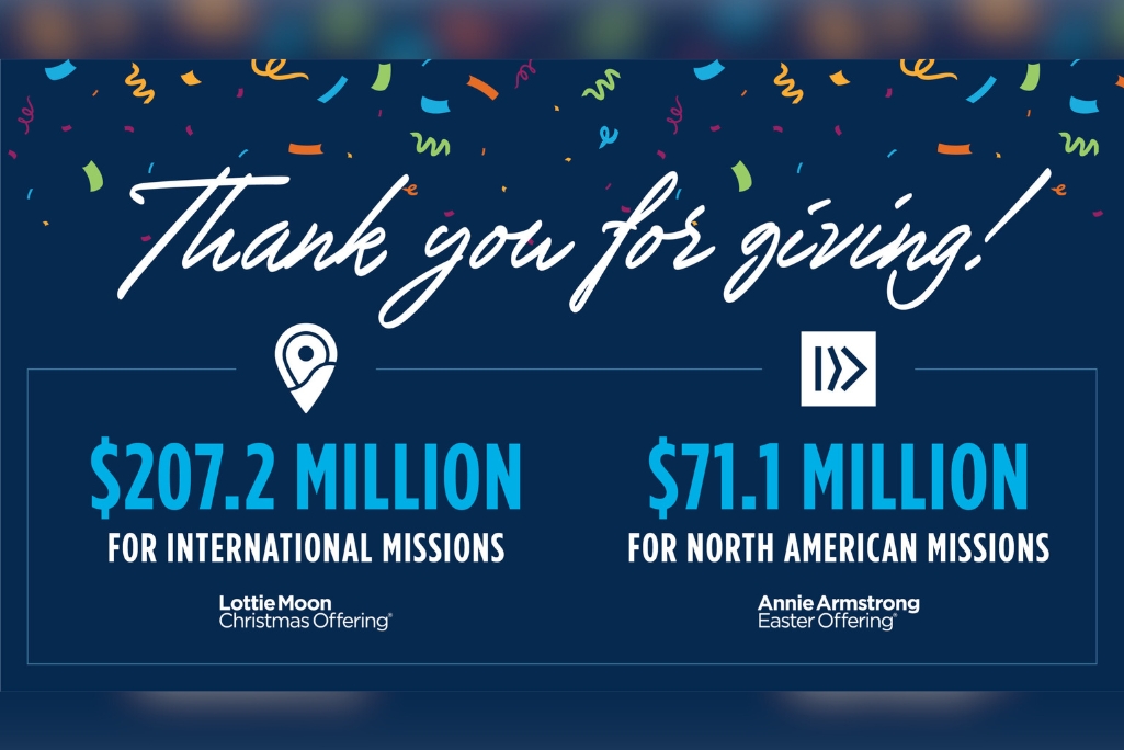 The continued faithfulness in giving through both the Lottie Moon Christmas Offering for international missions and the Annie Armstrong Easter Offering for North American missions demonstrates Southern Baptists’ unwavering commitment to the Great Commission, SBC missions leaders said.